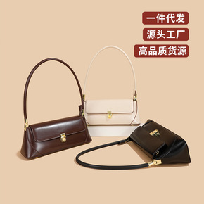 真皮包包女直播一件代发单肩包女士拉链小众设计包批发法棍腋下包