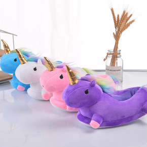 厂家直供独角兽拖鞋冬季家居毛绒拖鞋小马立体造型室内保暖棉鞋