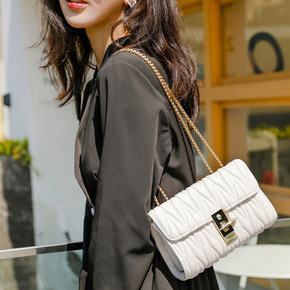 包包女时尚斜挎包2022年单肩小方包简约潮流链条绣花皱褶女包批发