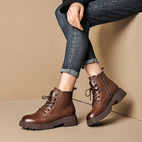 头层牛皮马丁靴女2022年秋冬新款复古单靴百搭英伦风短靴瘦瘦靴子