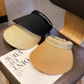 韩版ins草编空顶草帽女春夏沙滩度假物理防晒遮阳无顶发箍太阳帽
