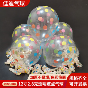 12寸2.8克透明印彩色圆点气球婚庆生日派对气球婚礼圆形波点气球