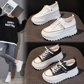春季新款内增高真皮休闲鞋圆头浅口小白鞋低帮牛二层皮女单鞋子