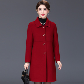 反季妈妈款双面羊绒大衣女修身2022新中老年羊毛尼子外套厂家批发