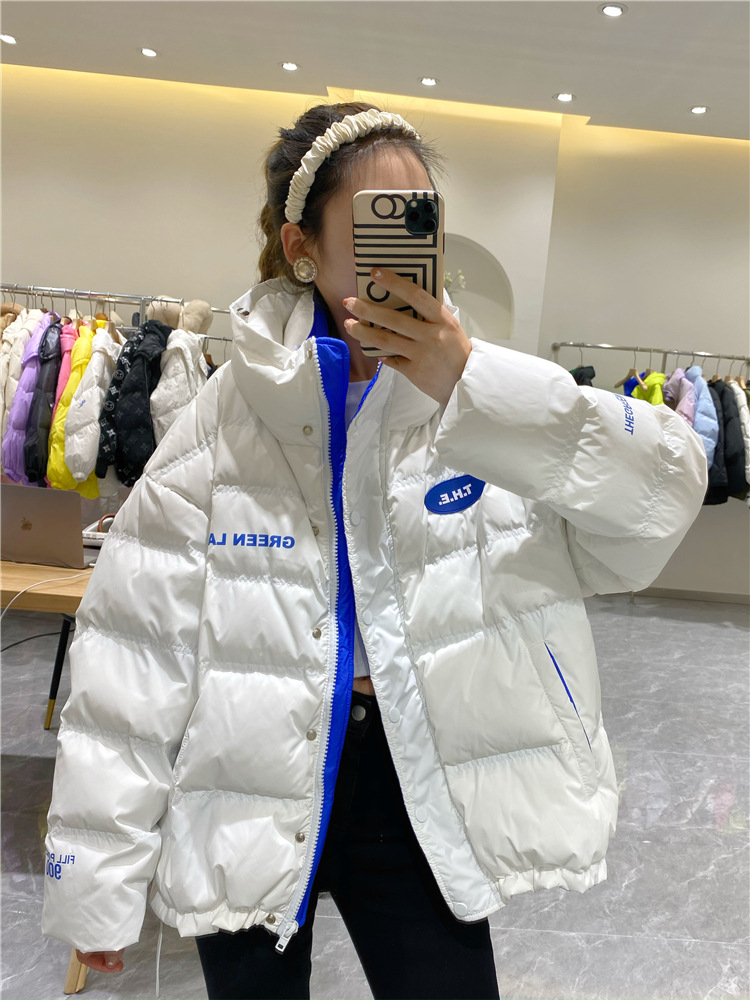2021新款羽绒服女短款双立领字母款时尚宽松休闲印花加厚外套批发