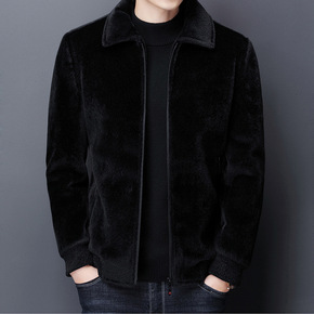 中老年商务休闲仿貂绒夹克衫2021冬季新款翻领加厚保暖外套爸爸装