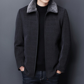 中老年商务休闲羊毛领植绒夹克2022冬季新款羊羔绒加厚爸爸装大衣