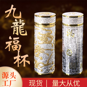 保温杯厂家批发 浮雕九龙银杯 足银内胆999雪花足银
