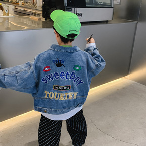 IM童装男童牛仔外套2022新款春季中大童儿童字母休闲上衣批发代发