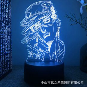 跨境3D小夜灯JOJO的奇妙冒险黑色触摸七彩裂纹16色USB台灯床头灯