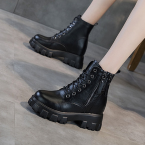 3233小码春秋季加绒内增高马丁靴女 厚底侧拉链ins韩版女真皮短靴