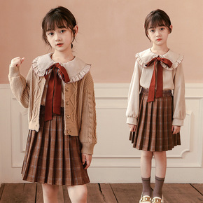 2022秋装女童韩版时尚秋冬女童装洋气毛衣开衫外套大童学院风套装