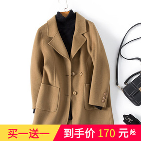 2021新款中长款西装领外套反季双面羊毛大衣女宽松小个子毛呢外套