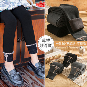 小巴兔女童打底裤秋冬款加厚加绒裤子外穿加绒女宝宝黑色九分裤