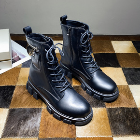 真皮马丁靴女2021秋冬新款圆头侧拉链皮靴女厚底时尚英伦风短靴女