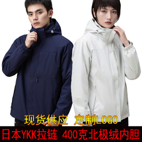 户外冲锋衣外套男女三合一两件套加厚可拆卸防风防水登山服印LOGO