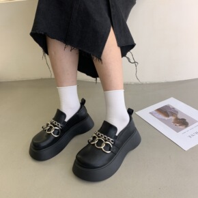 2022春季链子秋季新款英伦风厚底小皮鞋女乐福鞋一脚蹬松糕女单鞋