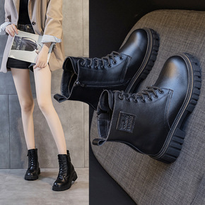 2022秋季新款真皮马丁靴女厚底内增高系带休闲韩版女小个子瘦瘦靴