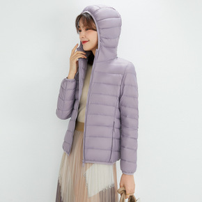 轻薄款羽绒服女连帽短款2022新款韩版修身90白鸭大码外套一件代发