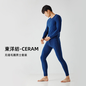 东洋坊绸丽保暖内衣薄款男士弹力无缝圆领套装大码仿羊绒秋衣秋裤