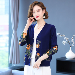 2022秋冬大码印花羊毛羊绒女针织开衫中年妈妈外搭毛衣外套 跨境