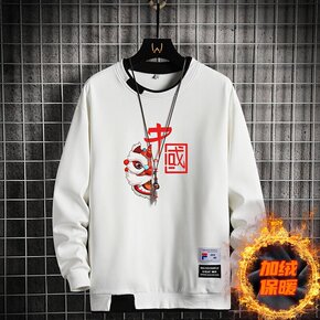 加绒卫衣男冬季长袖圆领打底衫青少年宽松加厚T恤学生休闲上衣服