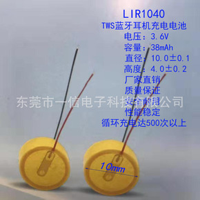 供应TWS蓝牙耳机3.6V 40mAh纽扣电池LIR1040