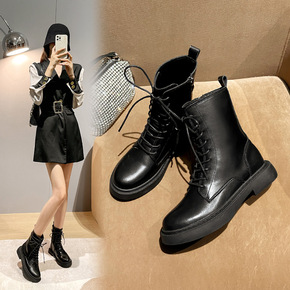 ins潮酷网红款马丁靴女英伦风2022年时尚新款中筒机车加绒短靴子