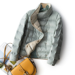 跨境压胶立领轻薄款羽绒服女短款2022冬新款时尚白鸭绒小外套潮
