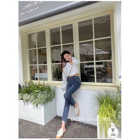1217 古月秋款品牌高腰高弹直筒牛仔裤女显瘦优雅气质烟管裤子潮