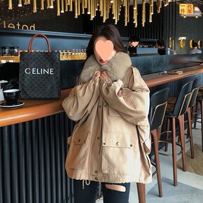 大码欧美女装洋气金貂绒大衣中长款宽松加厚胖mm毛呢外套200斤秋