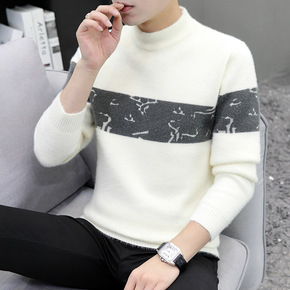 OBCY22021新款秋冬半高领毛衣青少年提花针织衫男潮
