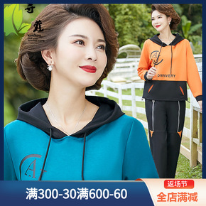 五十岁妈妈秋装卫衣女洋气2021新款中老年女上衣大码休闲运动套装