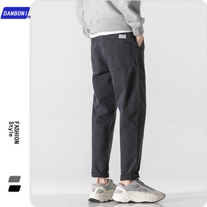DBN男装#休闲裤男宽松直筒工装裤韩版2022春秋季款松紧纯色裤子男
