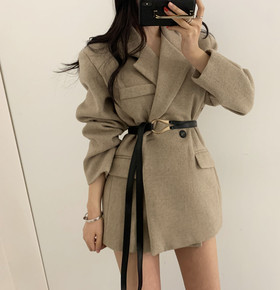 2022秋冬新款西装领两粒扣设计修身长袖毛呢外套配腰带女
