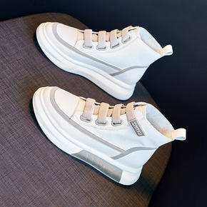 2022春秋新款厚底高帮鞋女松紧魔术贴百搭休闲板鞋ins真皮小白鞋