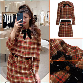 实拍2021新款千鸟格风衣式毛呢外套女秋冬小个子短款复古呢子大衣