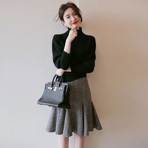 千鸟格半身裙女春秋季新款高腰显瘦a字裙知性优雅气质格子伞裙子