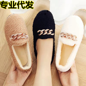 秋冬季加绒毛毛鞋棉拖鞋女学生豆豆鞋韩版鞋女网红鞋保暖平底鞋子