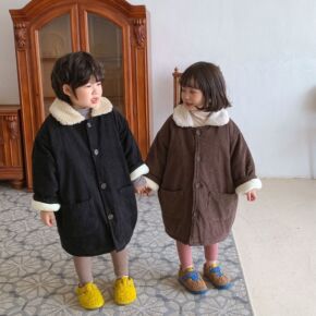 冬季新款韩版儿童棉衣中长款男女童灯芯绒棉服加绒超厚保暖棉风衣