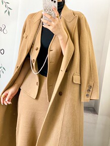 气质大衣秋冬新款双面羊绒大衣女中长款马甲两件套装毛呢羊毛外套