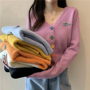 针织衫秋冬季开衫外套2022新款复古港风宽松日系彩色扣子毛衣女