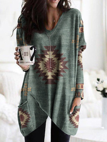 SQ3747 2021独立站秋冬新品西方民族风印花百搭中长款卫衣外贸