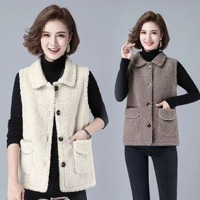 秋冬中老年羊羔毛马甲女韩版皮毛一体带领马夹妈妈装背心坎肩外套