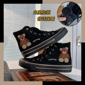 BL白鹿名匡2021新款卡通小熊加绒黑色女棉鞋高帮女鞋子女代发直播