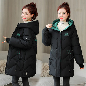 棉衣女2021新款韩版加厚连帽羽绒棉服中长款棉袄印花冬季大码外套