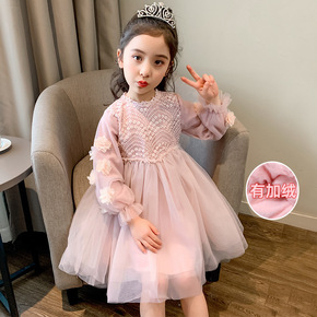 女童加绒连衣裙2022新款秋装儿童蕾丝公主裙洋气女孩纱裙网纱裙子