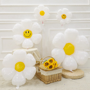 跨境ins小雏菊铝膜气球宝宝生日拍照道具 韩国白色花朵鸡蛋花气球