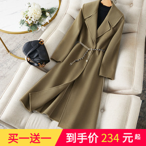 2021秋冬新款羊毛大衣女长款修身双面呢大衣手工缝制羊毛毛呢外套