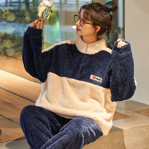 冬季睡衣女士长袖珊瑚绒套装加绒加厚保暖女冬天开衫法兰绒家居服
